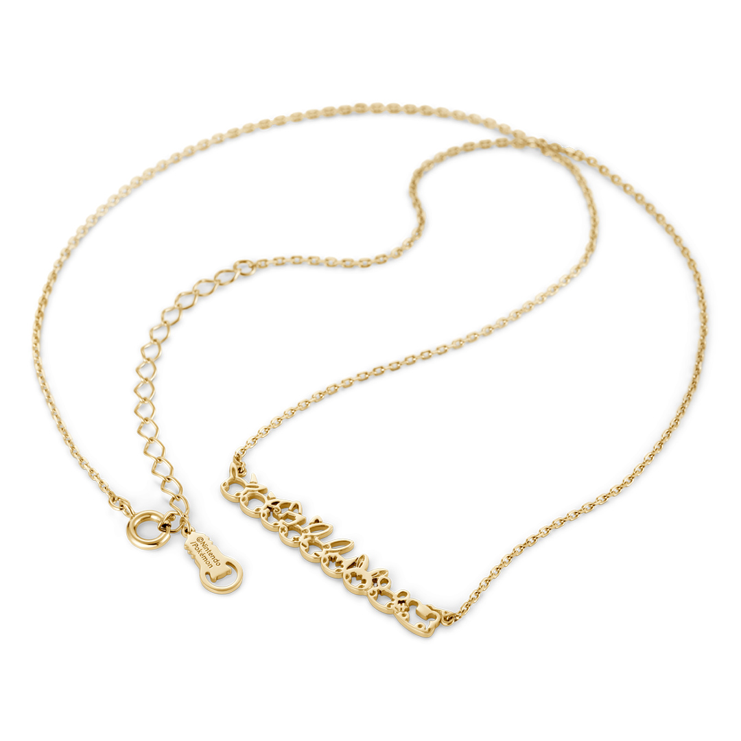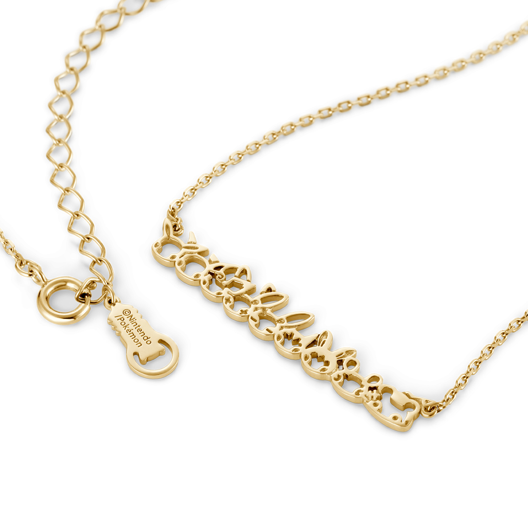 “ピカチュウ”をはじめとした、まるいほっぺたがかわいい“でんきタイプ”ポケモンたちが仲良く並んだラインプレートネックレス。めいっぱい充電してあなたを元気にしてくれます。