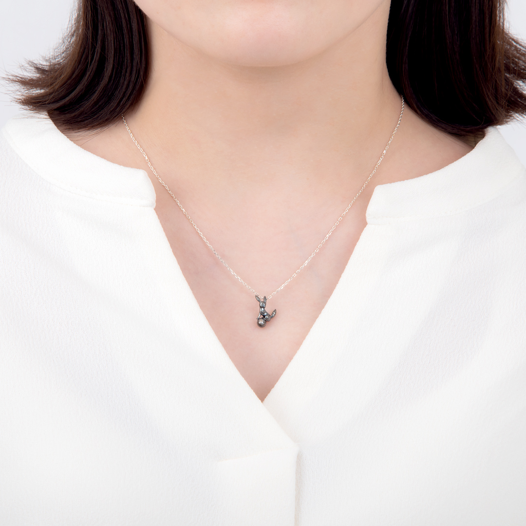 大好評のブラッキー&モンスターボールネックレスにブラックVer.が登場!“ブラッキー”がモンスターボールの上にちょこんと乗ったデザイン。“ブラッキー”の耳やしっぽ、表情まで立体的に再現。モンスターボールには、“ブラッキー”をイメージした宝石・ムーンストーンが留められています。