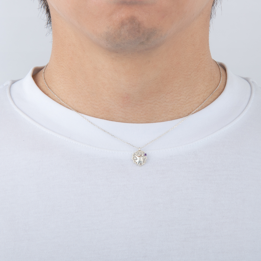 あやしい雰囲気を纏った「ゲンガー」をデザインしたネックレス。"ゲンガー"のカラーに合わせた天然石のアメシストがポイント。