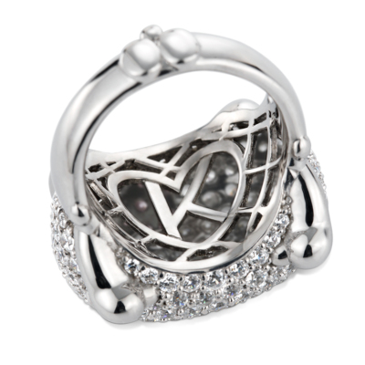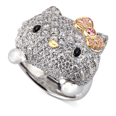 贅沢にメレダイヤを敷き詰めた、大胆なデザインのリング。 目はオニキス、リボン部分には希少価値の高いピンクダイヤを使用しています。 ※こちらの商品は14号サイズのみとなります