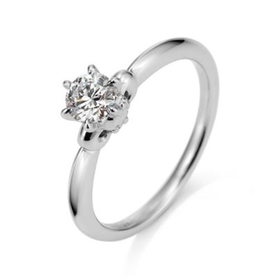ダイヤモンドを支える石座の側面にデザインされたハローキティ。 おすましした表情がとってもキュート! シンプルさの中に、さりげなく忍ばせた大人の遊び心が魅力的。