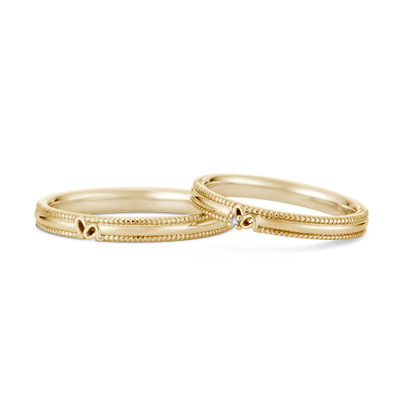 マイメロディのお耳をワンポイントに、上下の縁に一周連なるミル打ちを施して、クラシカルな雰囲気に仕上げたリング。大好きなマイメロディといつも一緒に。