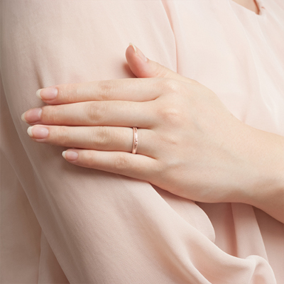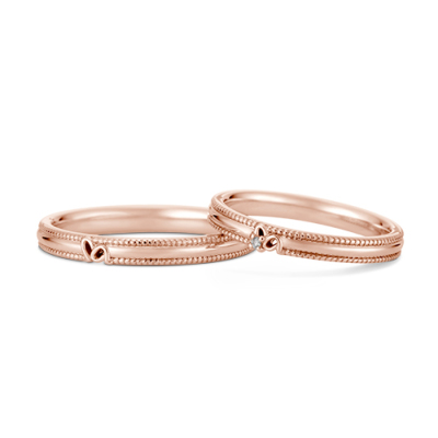 マイメロディのお耳をワンポイントに、上下の縁に一周連なるミル打ちを施して、クラシカルな雰囲気に仕上げたリング。大好きなマイメロディといつも一緒に。