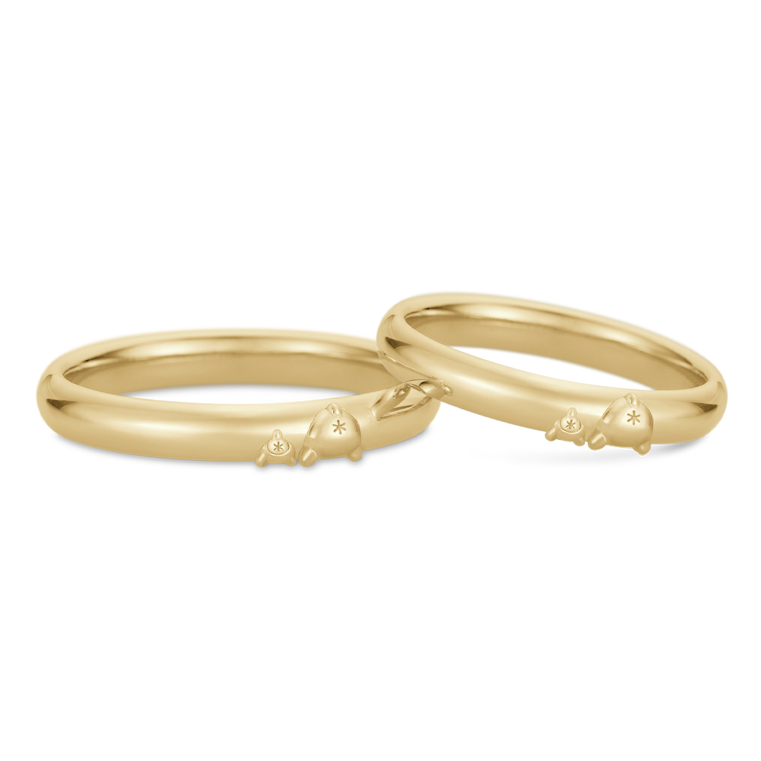 チャームポイントのお尻をぷっくりとデザインしました。リングの内側には、“ポムポムプリン”と“マフィン”が顔を覗かせています。「“ポムポムプリン”と“マフィン”のように、いつまでも仲良くいられますように。」