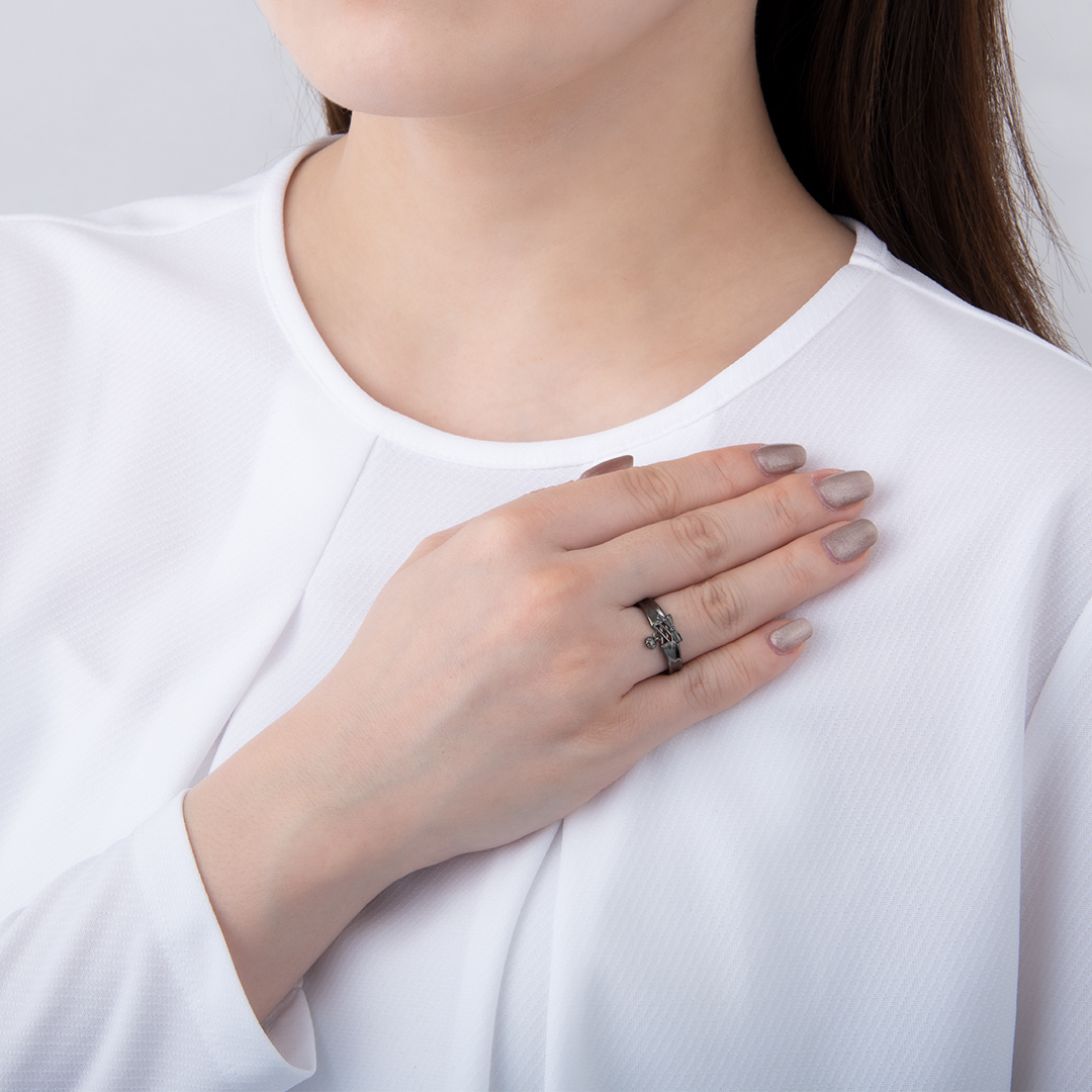 サンリオキャラクターズクロミ コルセットリング K10ホワイトゴールド(ブラックコーティング)