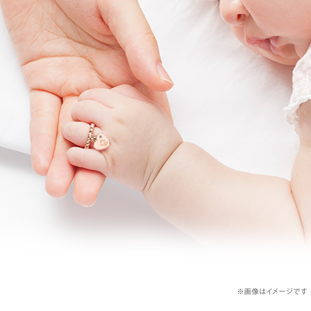 フランス語で「砂糖菓子」を意味するボンボン。「bon」は「良い」という意味も持っています。 一周連なる珠のように、幸せが続いていきますように…。ハートチャームが揺れる、キュートなベビーリング。