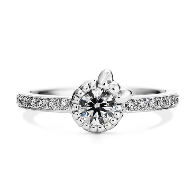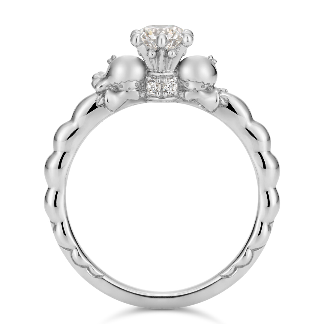 2色の金属で、ゆでたまごをイメージしたデザイン。 石座に、大切なダイヤモンドを見守るように“ぐでたま”をあしらいました。 大好きな“ぐでたま”を、いつでもそばに感じられそう…。