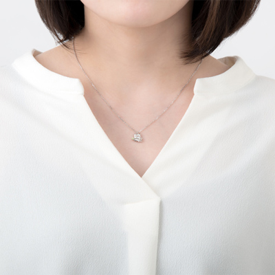 “けろけろけろっぴ”と“てるてる”が仲良く寄り添うデザイン。あなたの心にも“けろっぴ”がいつも寄り添ってくれるよう。イメージカラーのカラーストーンが首元を華やかに演出します。