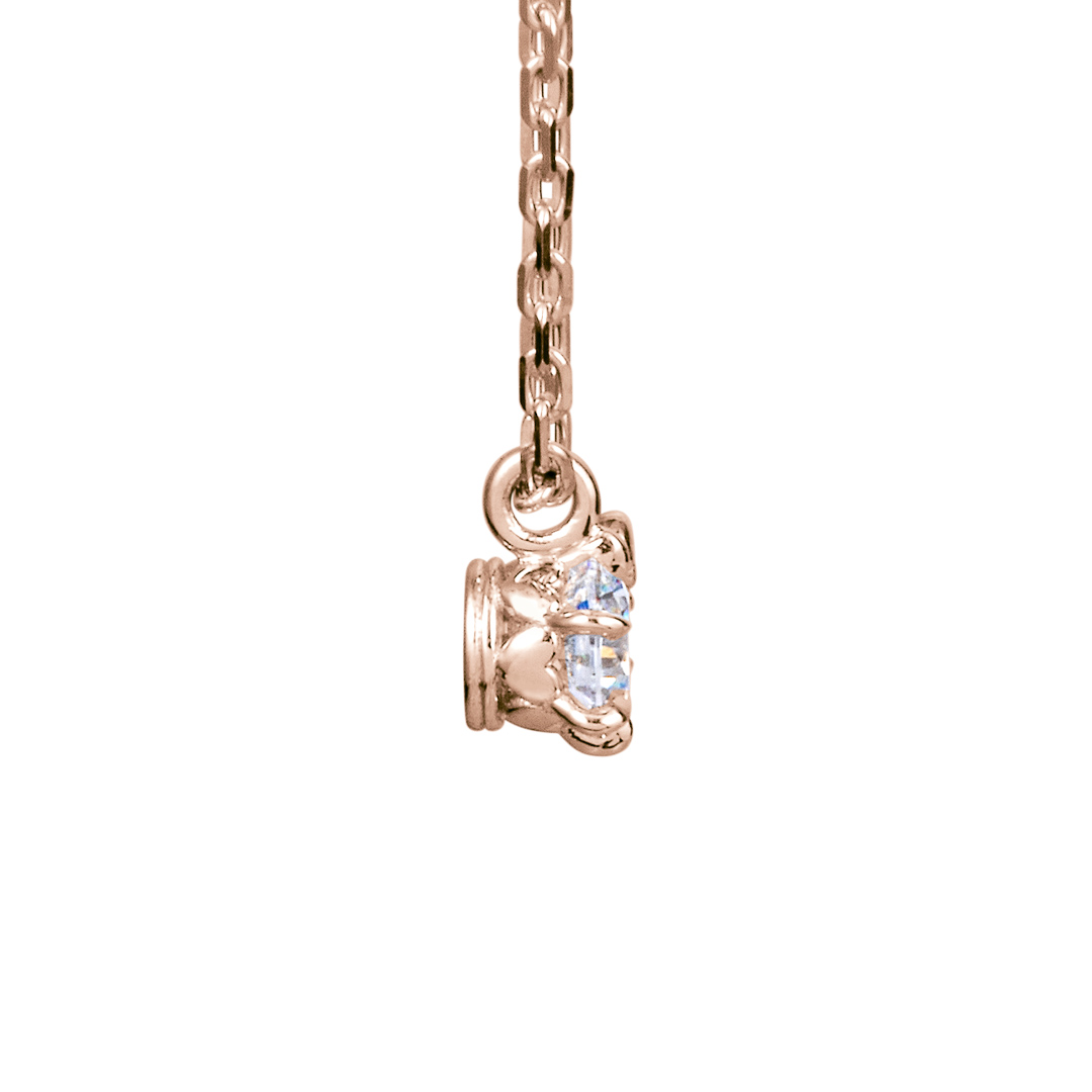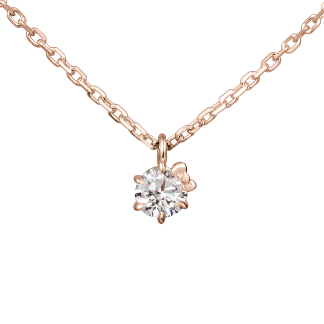 シンプルな一粒ダイヤモンドのネックレスにハローキティのリボンをデザイン。世界中から愛されるハローキティのように、キラキラとまぶしく輝き続けることを願って。