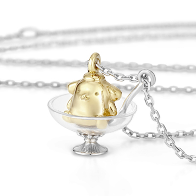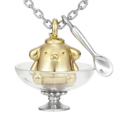 カップの中にちょこんと座るポムポムプリン。大好物のプリンになりきっているのかな!?思わず笑みがこぼれる、可愛さ満点のネックレス。ゴールドカラー(ポムポムプリン)と、シルバーカラー(それ以外)のコンビネーションもポイント。スプーンの部分はゆらゆらと動く作りに。思わずプリンをすくって食べちゃいたくなりそう!!