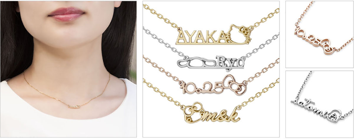お好きな「文字」と「サンリオキャラクター」を選んで、あなただけのオーダーメイドネックレスが完成!ハローキティ、シナモロール、ポムポムプリンなど、大好きなサンリオキャラクターといつも一緒に…。愛らしいサンリオキャラクターがデザインされた、他では手に入らないU-TREASUREオリジナルのネームネックレス。海外でも定番人気のネームネックレスは、プレゼントとしてもおすすめ。さり気ないサイズ感で、デイリーに身に着けやすいのも魅力です。