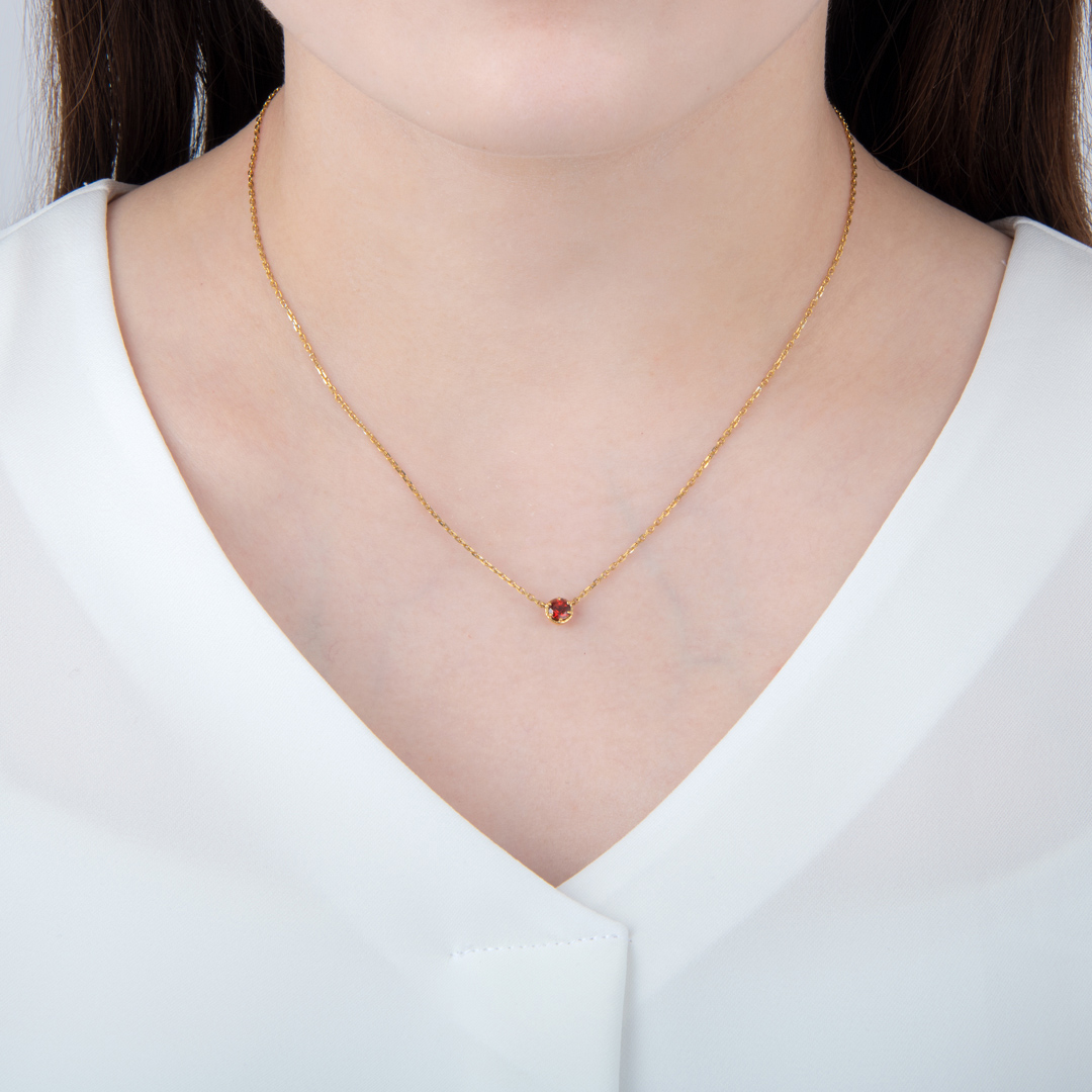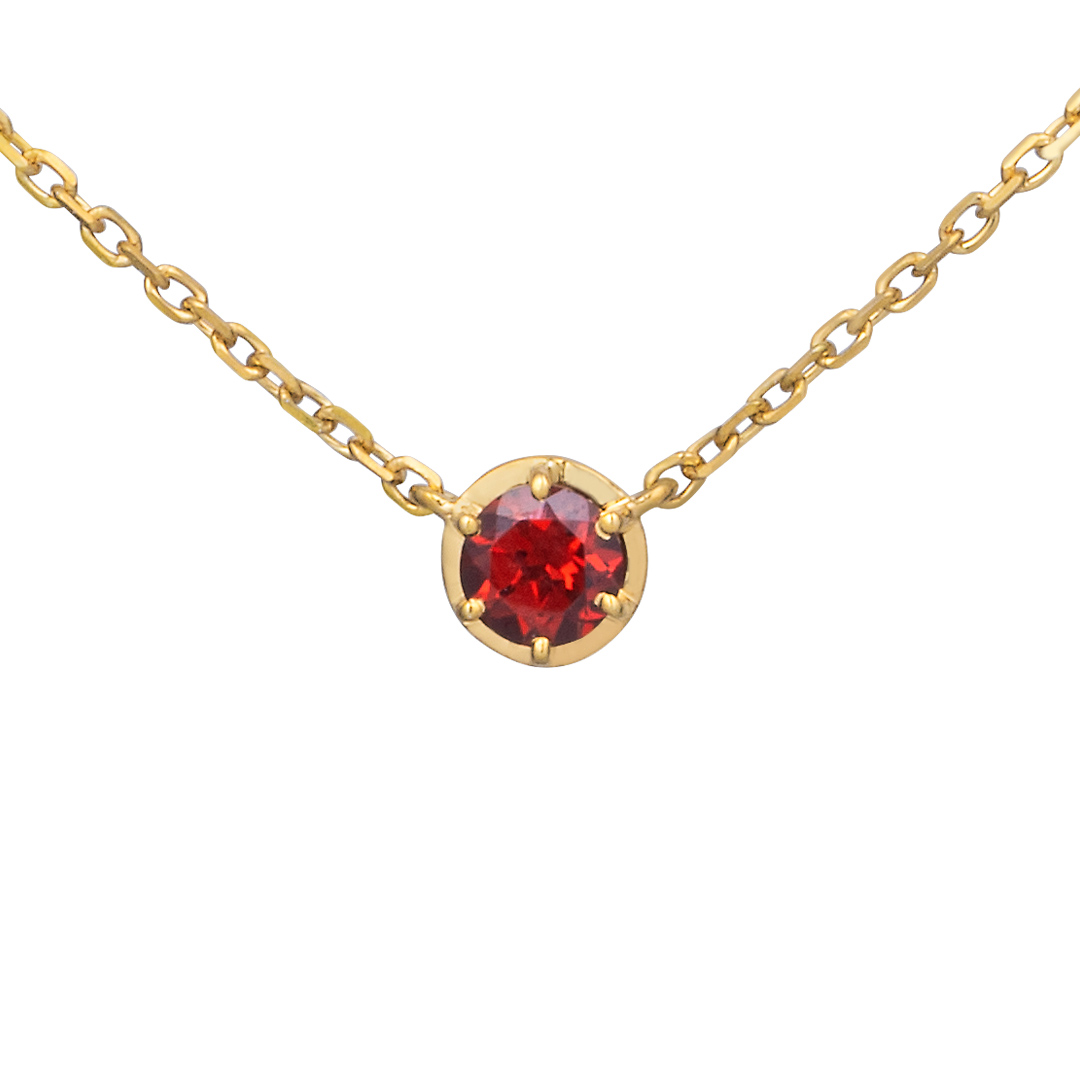 それぞれのキャラクターをイメージしたカラーの宝石を使用した一粒石ネックレス。日常使いしやすいように、正面はシンプルに。