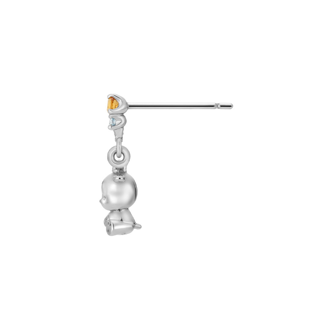 大好物のバナナアイスクリームをイメージした2色のカラーストーンをアクセントに耳やしっぽ、足の裏の細部まで、ポチャッコのチャームポイントを立体的に再現。シトリンとブルートパーズのさわやかな色味が上品な印象。