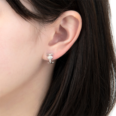 「才能が開花する力」があると言われている、シェルモチーフ。大好きなシナモロールを一緒にデザインすることであなたの背中をそっと支えられたら…、という願いを込めて。シナモロールをイメージした、ブルーのダイヤモンドが耳元を華やかに演出します。