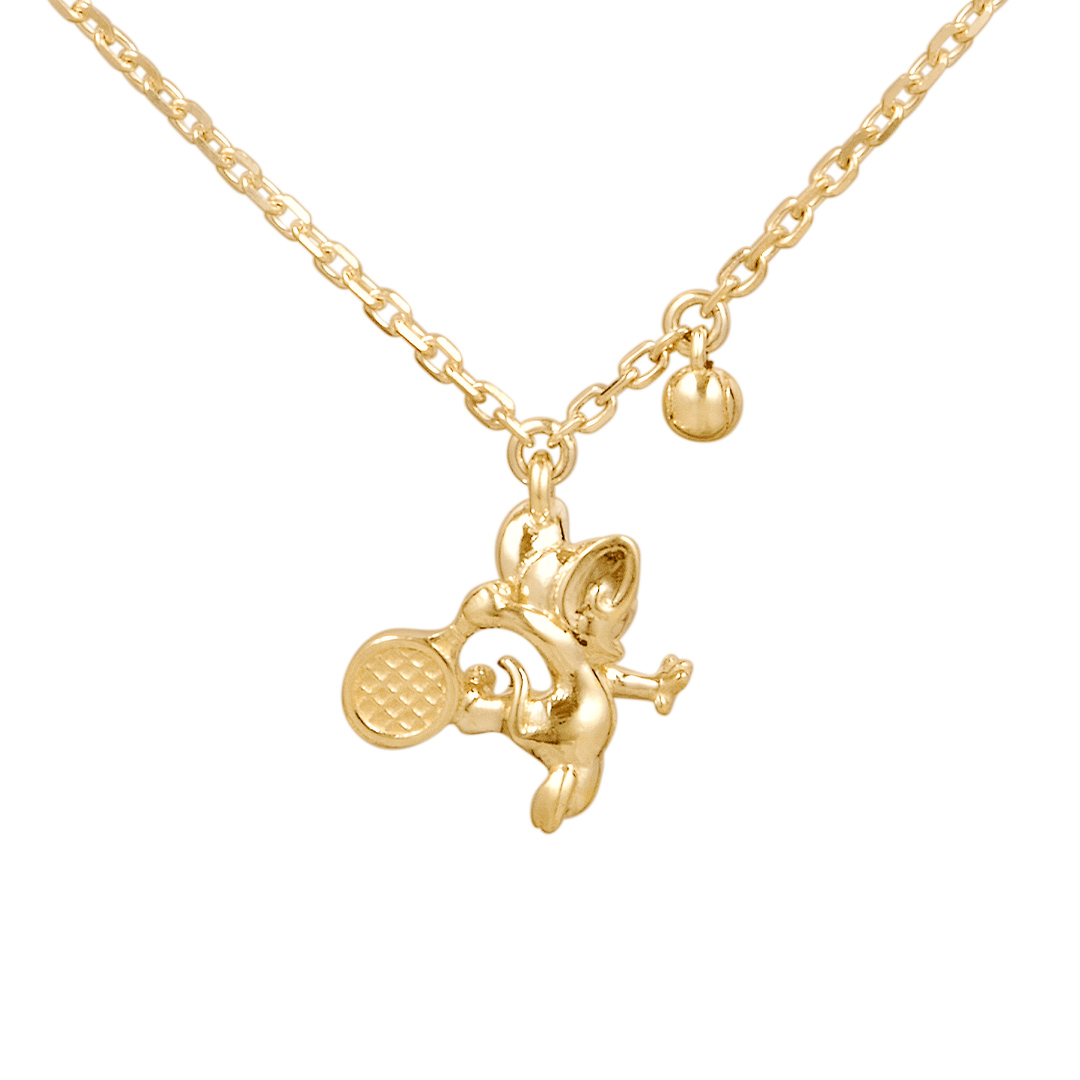 テニスをしている「ジェリー」のネックレス。細部まで作り込み、いまにも動き出しそうな、躍動感溢れるデザイン。
